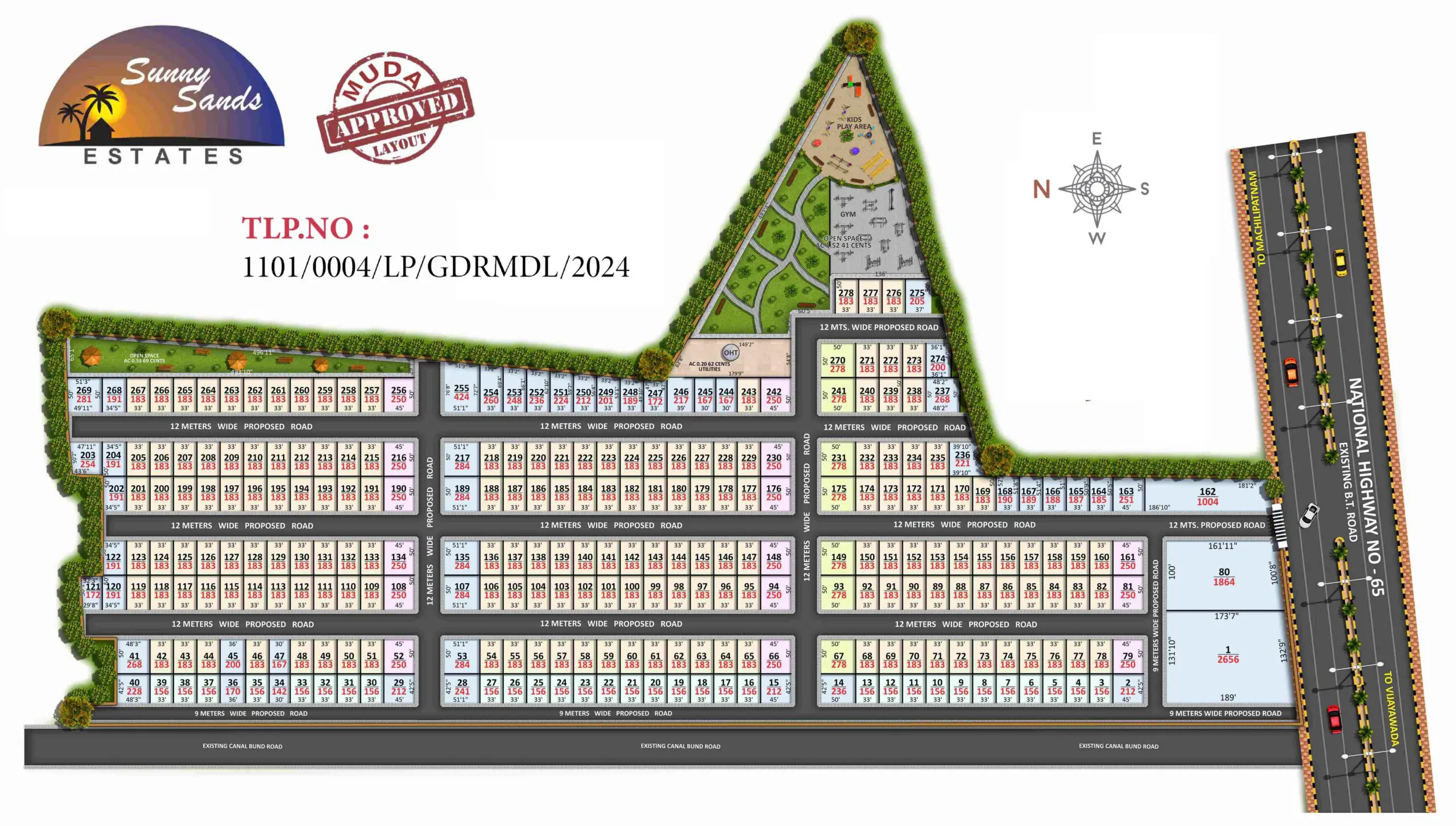 Sunny Sands Estates is a planned premium villa project located in Parnasala/Tarakaturu Village, Krishna District, Andhra Pradesh. Conveniently located along NH65, it offers excellent connectivity and strong potential for long-term investment.